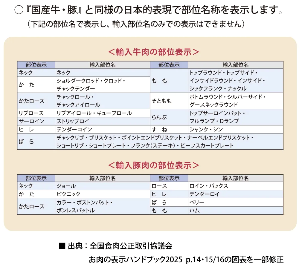 ● 輸入牛・豚肉の部位表示