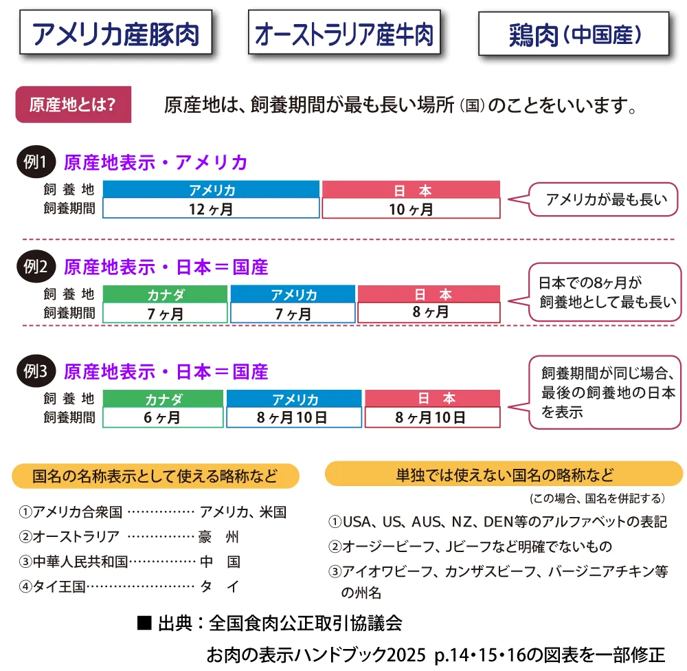 食肉の原産地は、国産ならば国産、輸入品ならば原産国を表示する。