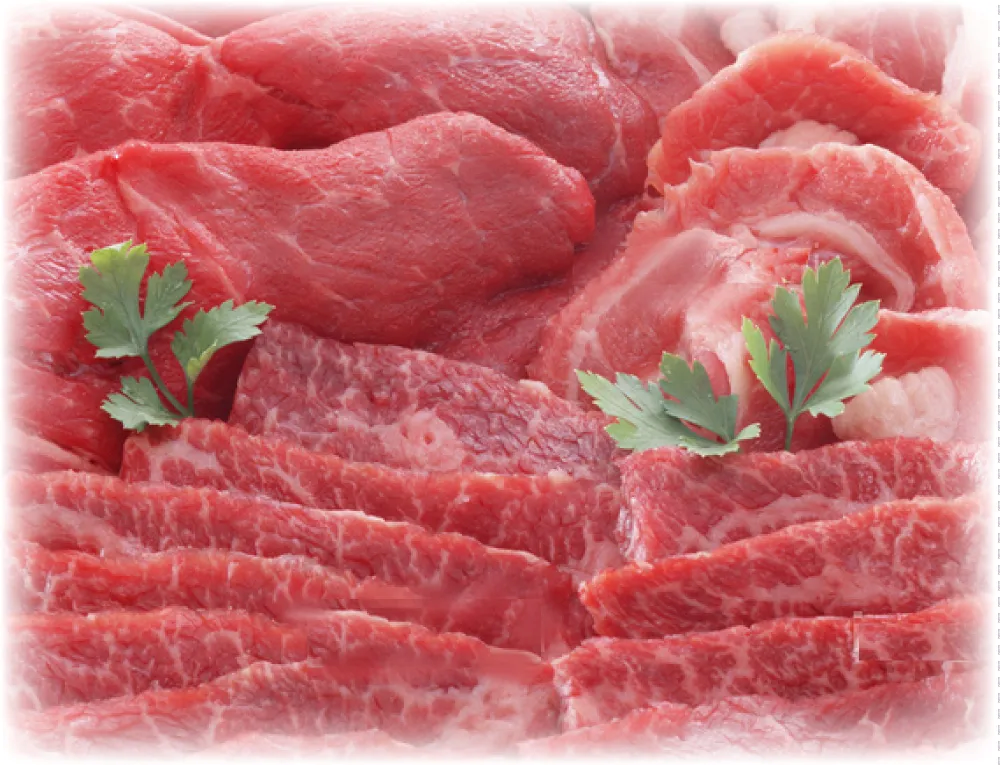 ➍ 牛の種々の個体、種々な部分肉の端材を使って商品にした こま切れ・切り落とし